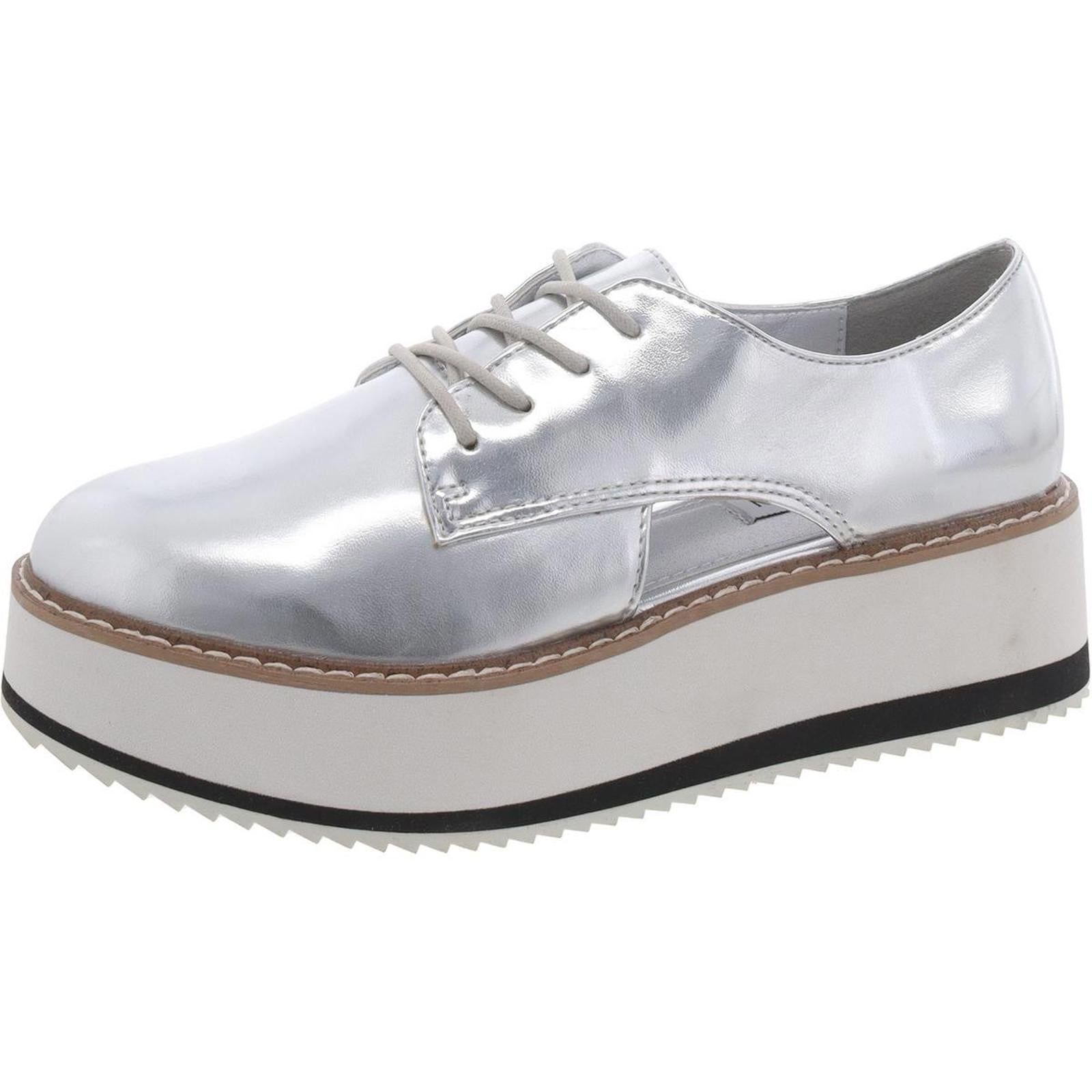Steve Madden Womens Gina Faux Leather Metallic Oxfords